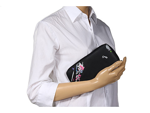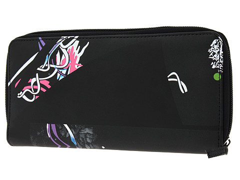 Faux carteira de couro com vários projetos. Preto e colorways Lip-Stick s?o feitas de couro sintético. Black colorway Feelgood é feita de nylon.